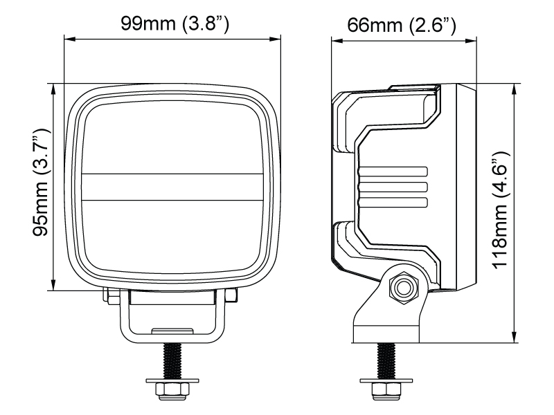 Kirjeldus: punane klaas, Wide Flood, isoleeritud elektroonika. M8 paigalduspolt, kõrgus koos kinnitusega 118mm, integreeritud 2-klemmiga Deutsch pistik, löögitaluvus 60G, vibratsioonitaluvus 8Grms 24-2000Hz, töötemperatuur -40°C … +85°C